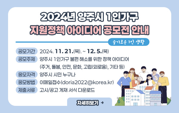 『양주시 1인 가구 지원 정책 아이디어 공모전』 개최